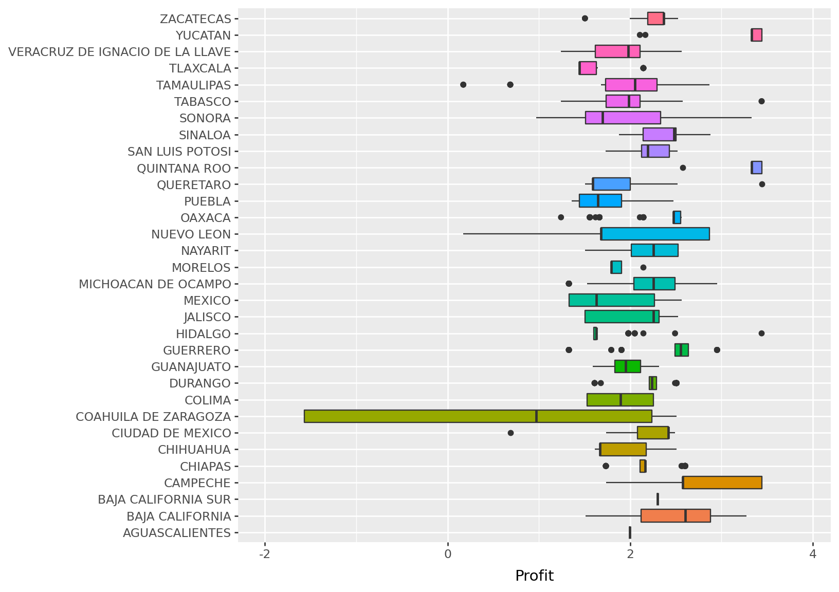 The following chart shows the dispersion of profit by selling gasoline by State in Mexico.