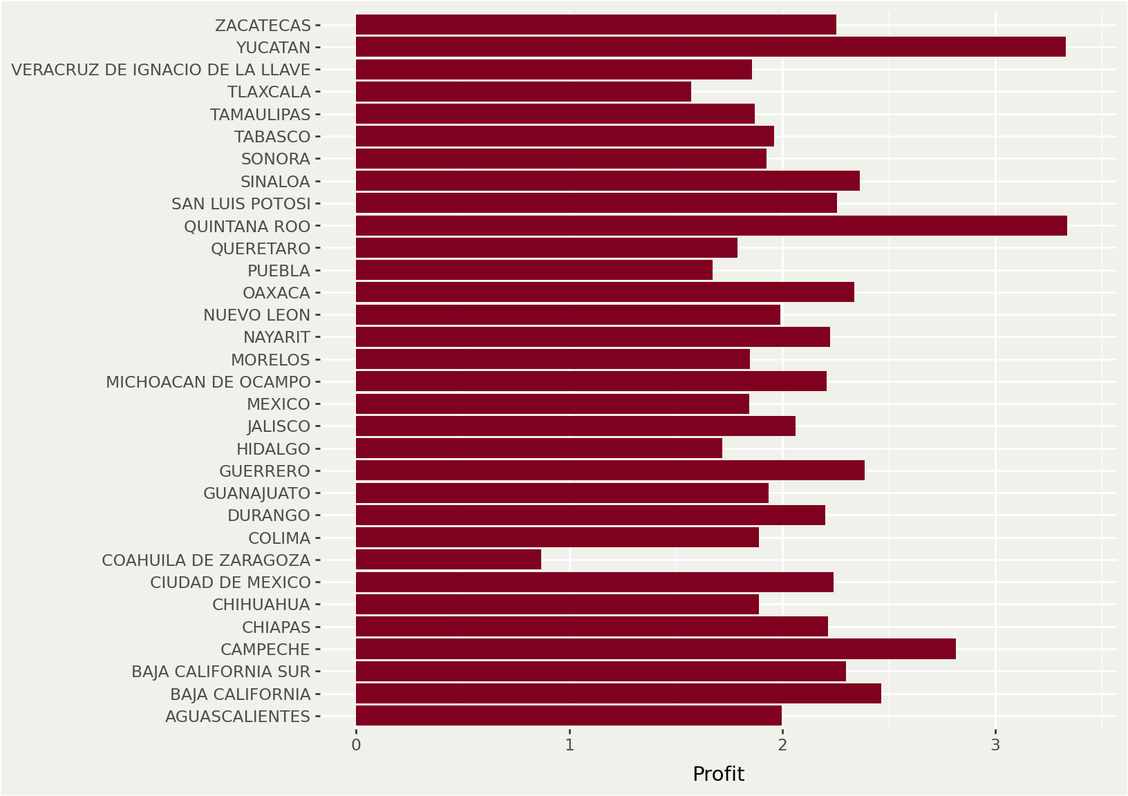 The following chart shows average profit by selling gasoline by State in Mexico.
